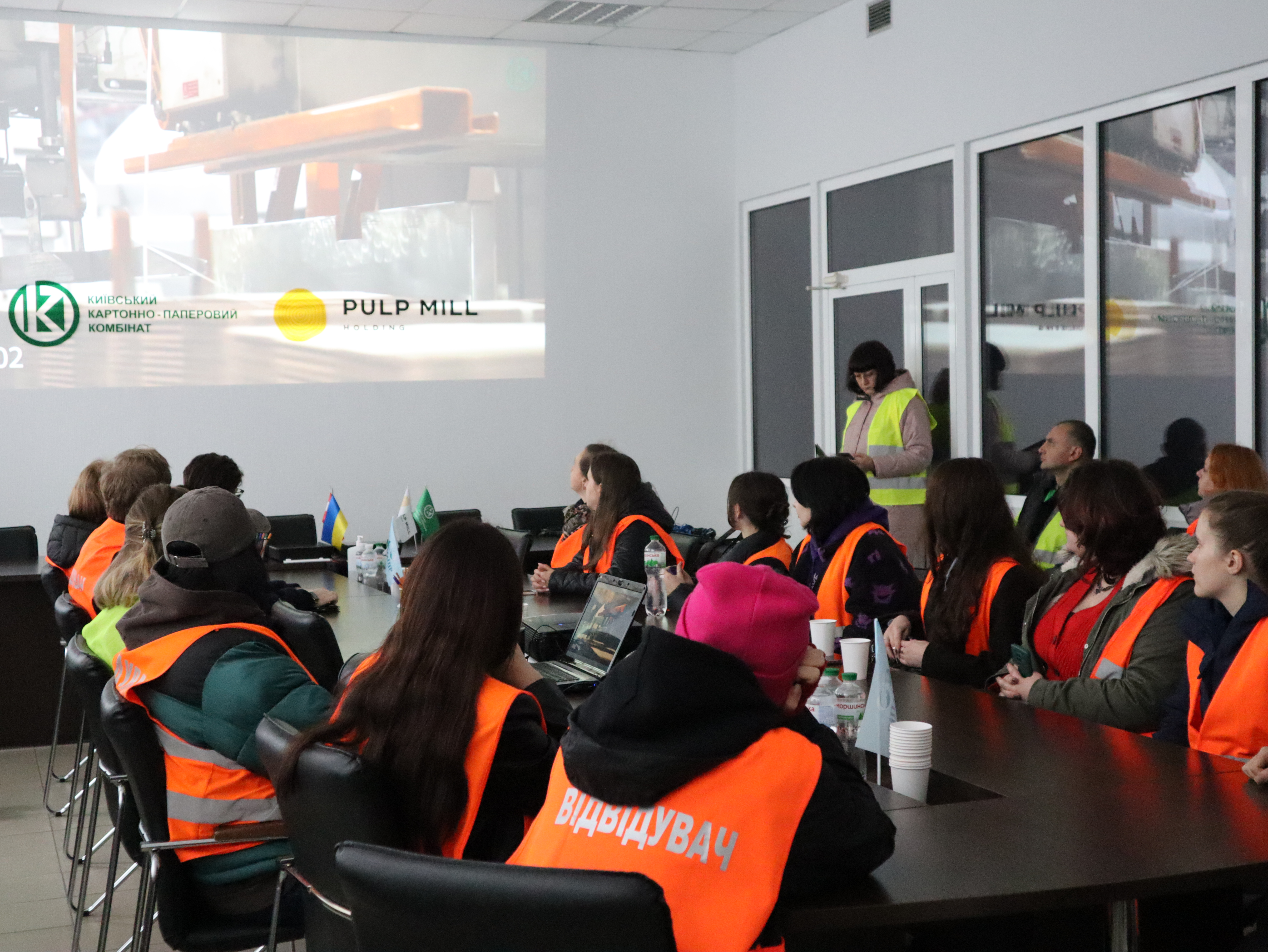 Під час візиту студенти ознайомилися з повним виробничим циклом картонно-паперової продукції — від переробки макулатури до виготовлення пакувальних матеріалів на основі картону. Особливу увагу було приділено питанням екологічної безпеки, раціонального використання водних ресурсів і системам очищення стічних вод, що діють на підприємстві. У ході спілкування з фахівцями комбінату учасники обговорили сучасні підходи до зниження негативного впливу виробництва на довкілля.