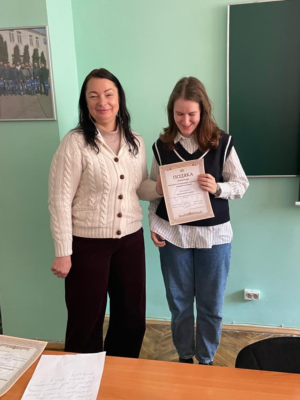 Вручення Подяк Вченої ради факультету викладачам та студентам кафедри