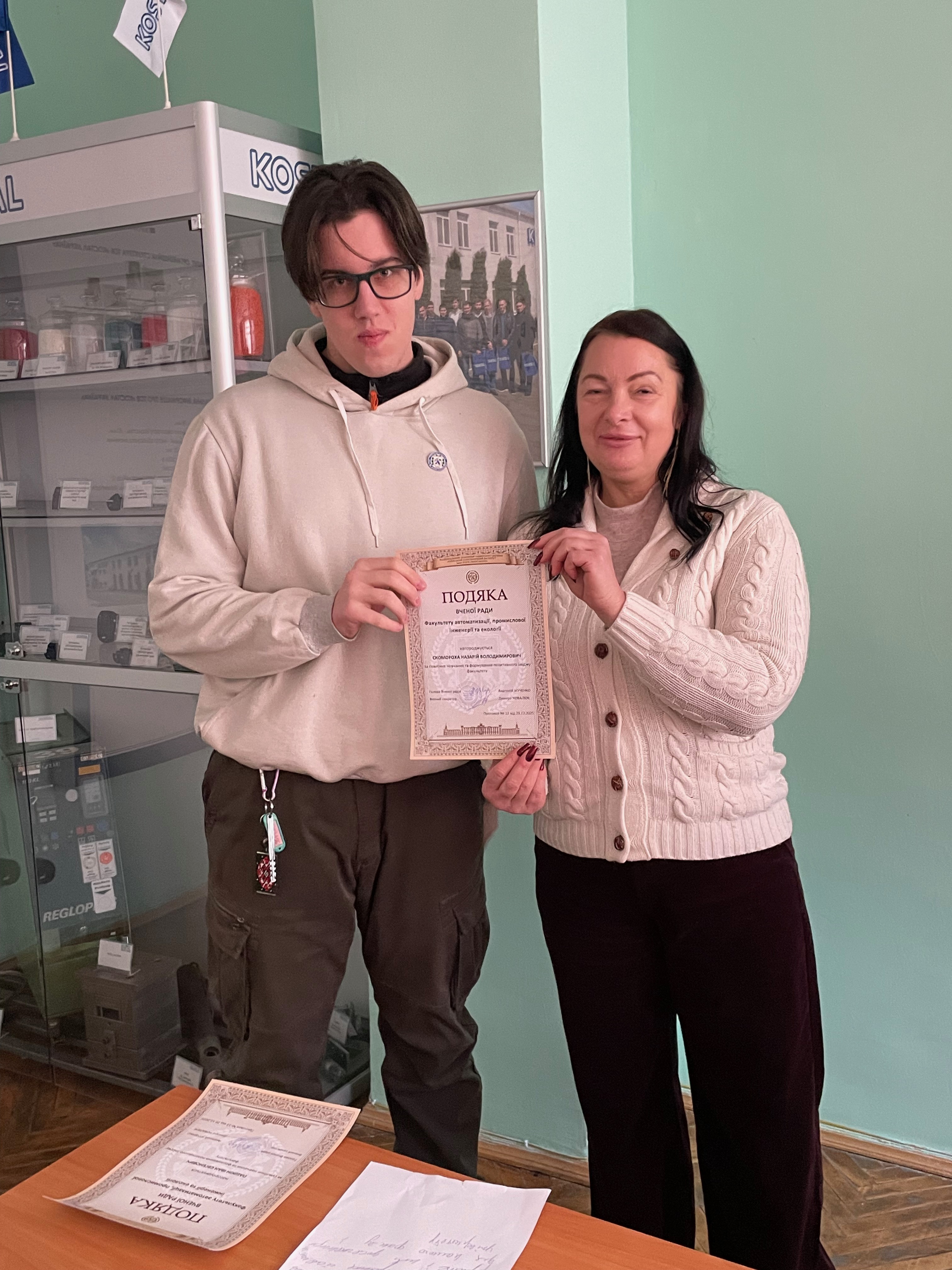 Не залишилися поза увагою й здобувачі вищої освіти, які своєю працею та активною участю у житті КПІ ім. Ігоря Скіорського сприяють формуванню позитивного іміджу факультету. Здобувачі вищої освіти Лубська Поліна Ігорівна та Носачов Кирил Олексійович також були відзначені Подяками Вченої ради.